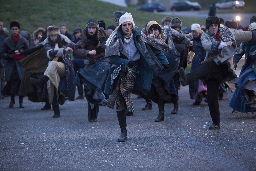 Une création combinant un déambulatoire réalisé avec la complicité de la population – ayant une pratique amateur théâtre, danse, sport - et un second acte en fixe.