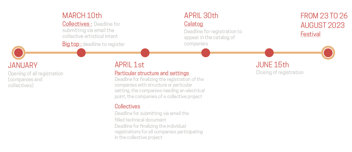 - Second registration time from April 1st to June 15th. It only concerns fixed performances (no wanderings) that do not require an electrical access at the spot.