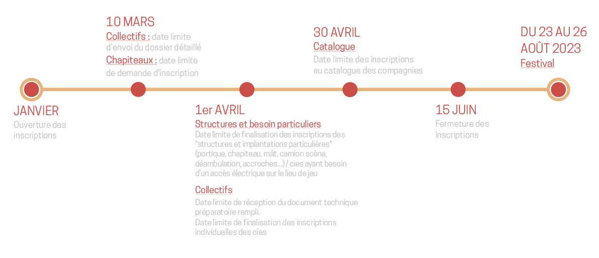 > Les compagnies inscrites et/ou ayant finalisé leur inscription après le 1er avril seront informées de leur pré-planning de représentation entre mi-juillet et mi-août.